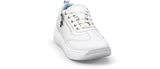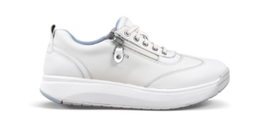 Laura white: High-quality leather lace-up shoe with finely embossed side panels, a practical side zipper for easy on and off, and breathable mesh lining. Your stylish and comfortable everyday companion. Joya Senso sole technology provides excellent cushioning and even pressure distribution – delivering noticeable relief for your back, joints, and feet.