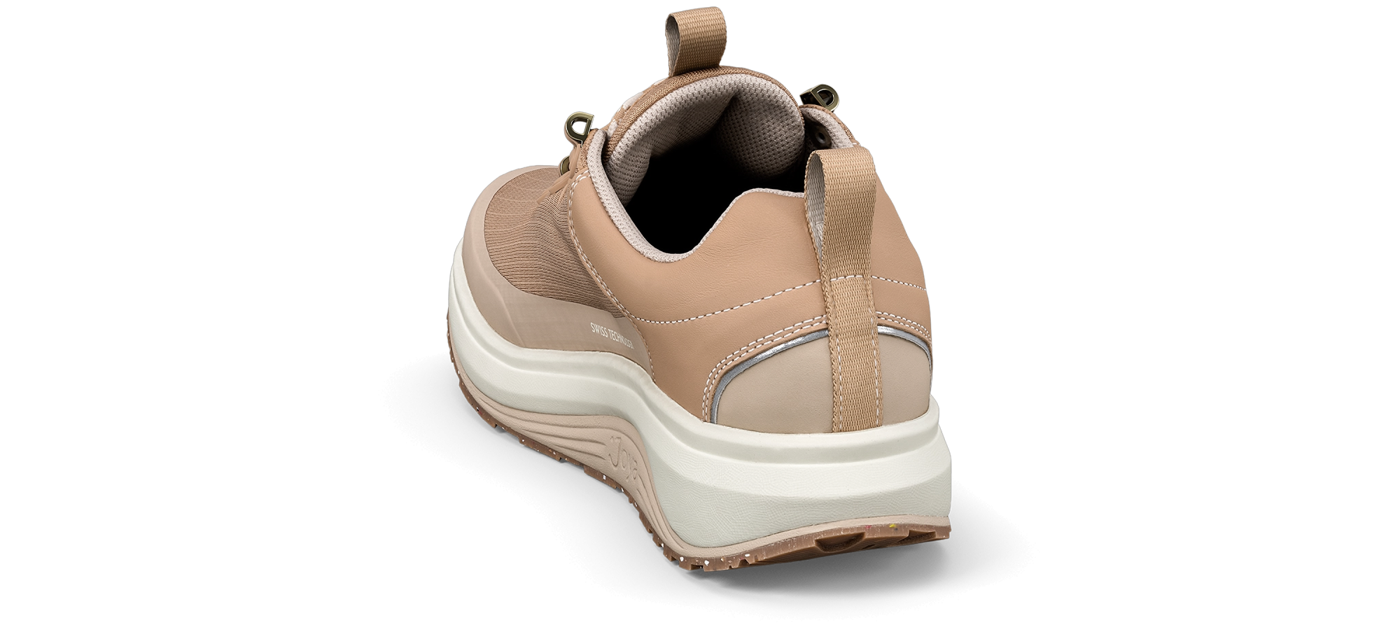 Maui STX beige: Weatherproof outdoor shoe with durable ripstop nylon, seamless knitted upper and laminated reinforcements. The breathable Sympatex membrane ensures that your feet stay warm and dry even in bad weather. Thanks to the Joya Multi-Fit insole, the shoe can be individually adjusted for a perfect fit – even with orthopaedic insoles. The Joya Wave sole technology supports the arch of the foot, promotes a natural rolling motion and offers noticeable comfort with every step.