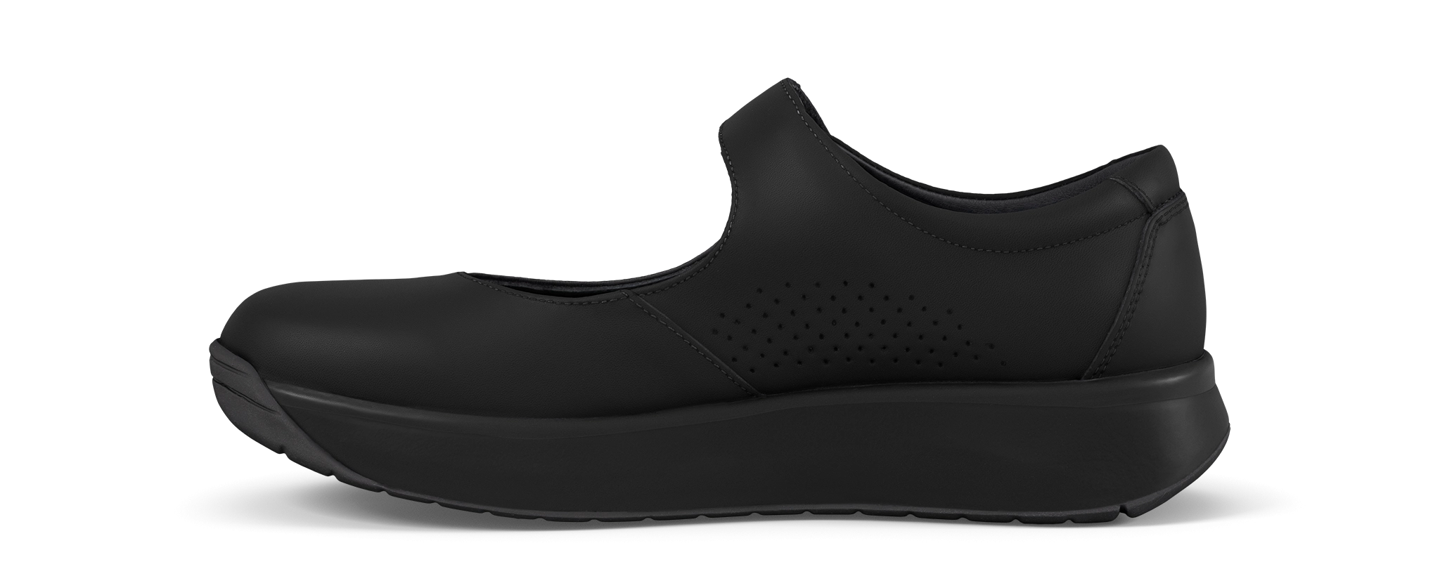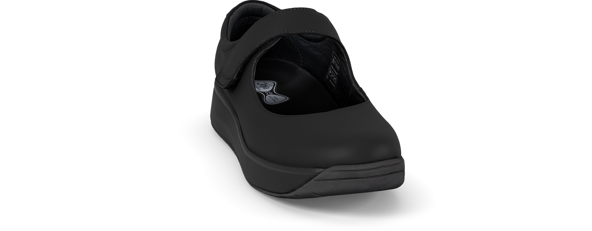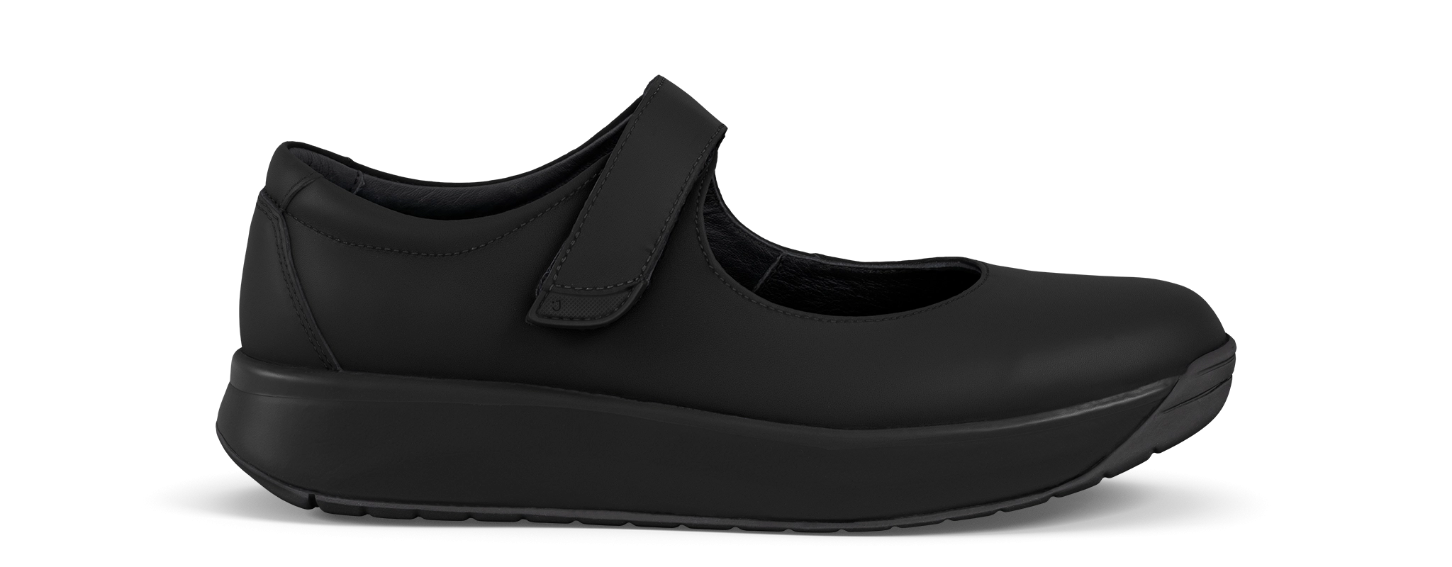 Audrey black II: Moderner und minimalistischer Mary-Jane mit Klettverschluss am Rist für eine verstellbare Passform. Elegantes Obermaterial Premiumleder und Lederfutter für kompromisslosen Komfort und Stil. Ausgestattet mit der Joya Senso Sohlentechnologie, die eine exzellente Dämpfungswirkung und eine ausgewogene Druckverteilung gewährleistet und somit optimalen Komfort und Entlastung für Ihre Rückenmuskulatur, Gelenke und Füße bei täglicher Belastung bietet.