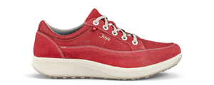 Lucy red: Unverzichtbarer und vielseitiger Schnürschuh mit Obermaterial aus geschmeidigem Veloursleder und atmungsaktivem mesh Futter. Mit weich gepolstertem Kragen und Zunge für ultimativen, kompromisslosen Komfort. Die ideale Wahl, um Ihre tägliche Mobilität mit einem entspannten Look und Gefühl zu verbessern. Abgerundet mit der außergewöhnlichen Joya Nuvola Sohlentechnologie, die aus einer weichen und elastischen Zwischensohle und einer leichten Gummilaufsohle besteht.