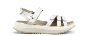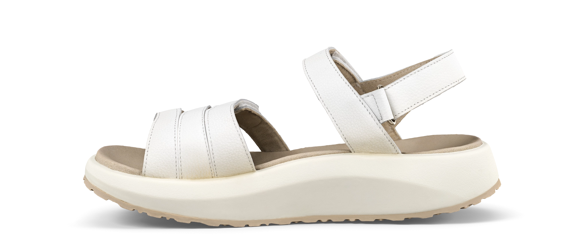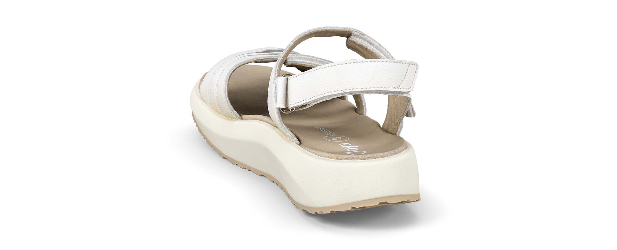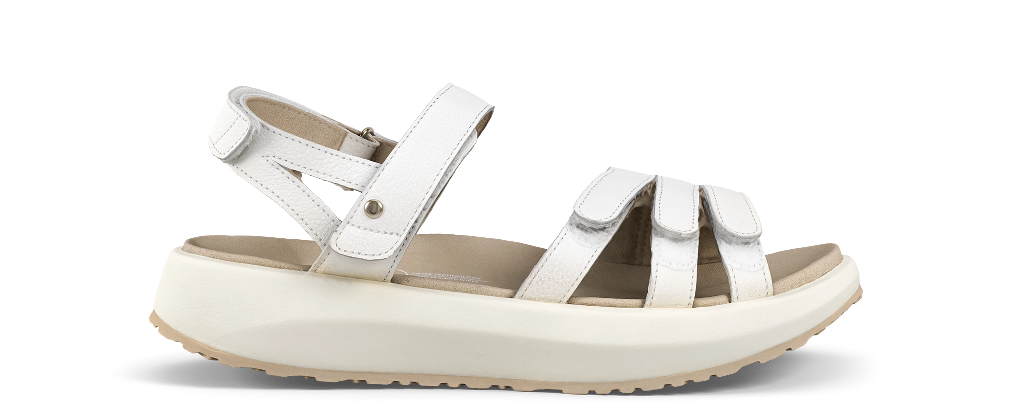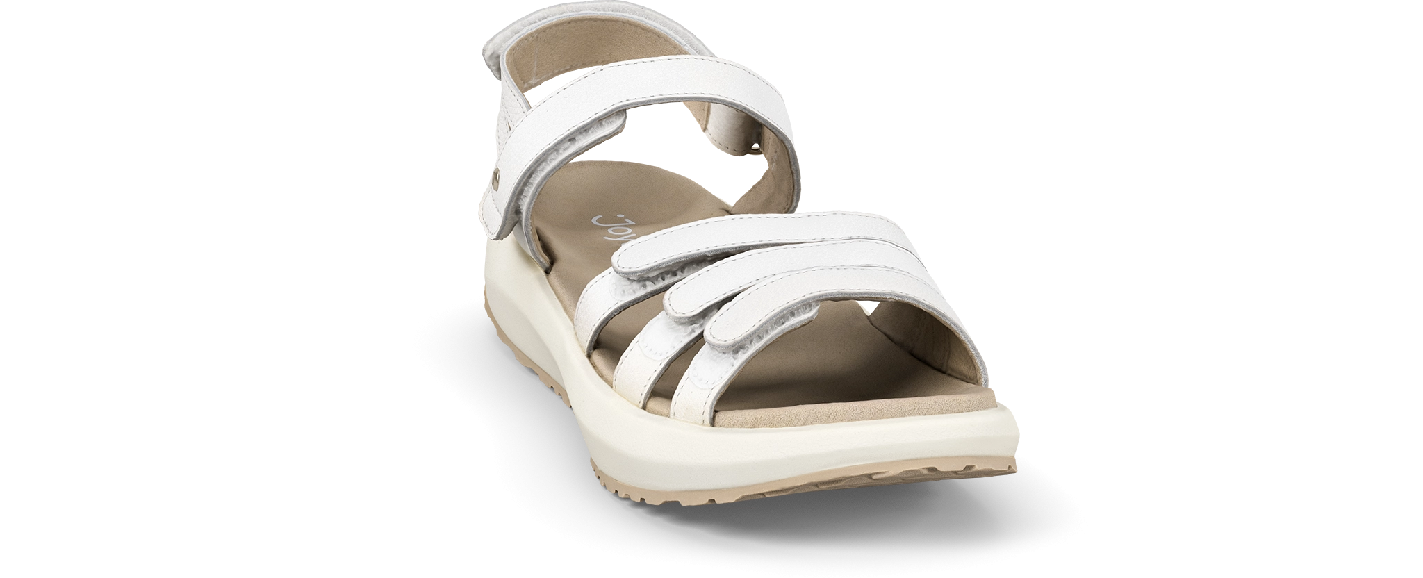 Merida white: Edle Premiumleder Multistrap-Sandale mit glattem und samtigem Mikrofaserfutter. Die Klettverschlüsse auf der Vorderseite, auf dem Spann und an der Ferse garantieren eine 360-Grad-Verstellbarkeit für jede Fußform. Elegant und sorglos. Ausgestattet mit der Joya Senso Sohlentechnologie, die für eine hervorragende Dämpfung und eine ausgewogene Druckverteilung sorgt und somit optimalen Komfort und Entlastung für Ihre Rückenmuskulatur, Gelenke und Füße bei täglicher Belastung bietet.