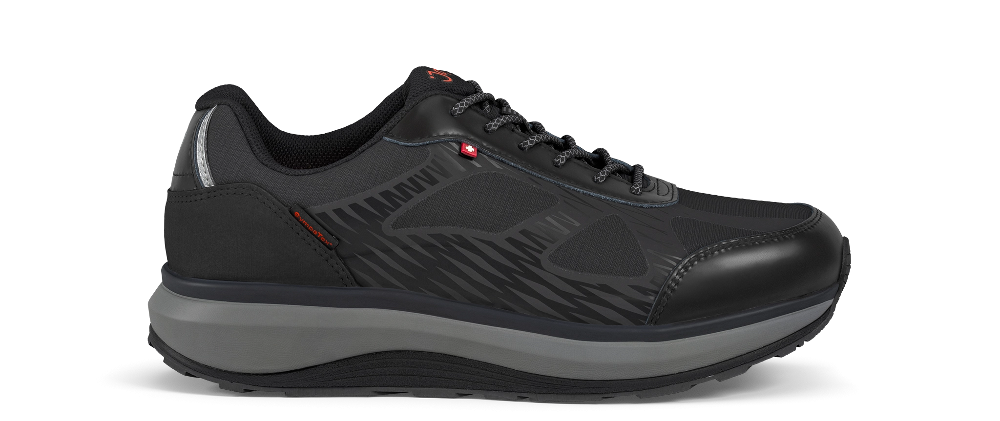 Cancun II STX black: Schnürschuh aus Ripstop-Nylon mit strukturellen Laminierungen und gepolstertem Futter. Ausgestattet mit einer wasserabweisenden Sympatex-Membran, die Ihre Füße warm und trocken hält. Dank der Joya Multi-Fit Innensohle, die es ermöglicht, den Schuh spezifisch an jeden einzelnen Fuß anzupassen und mit Orthesen Innensohlen zu kombinieren, passt er immer zu Ihrer idealen Passform. Ausgestattet mit der Joya Wave Sohlentechnologie, die außergewöhnlichen Komfort bietet, das Fußgewölbe stützt und den natürlichen Bewegungsablauf fördert.