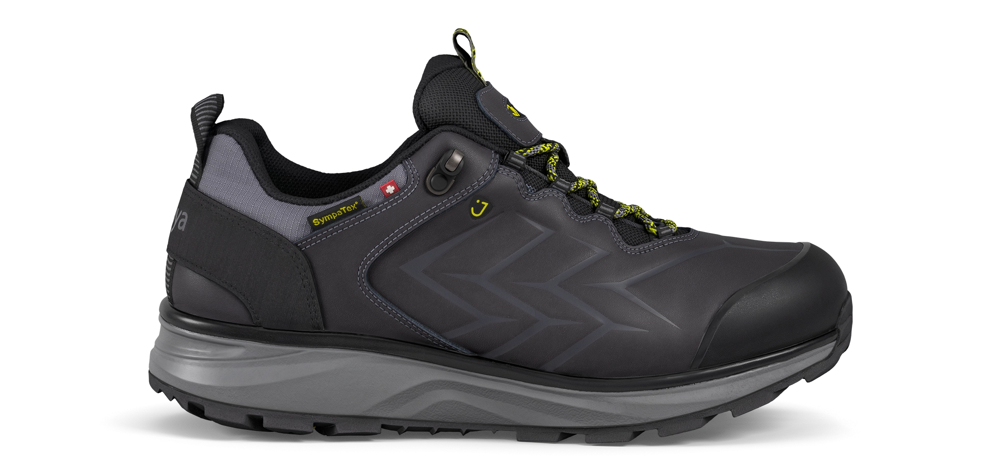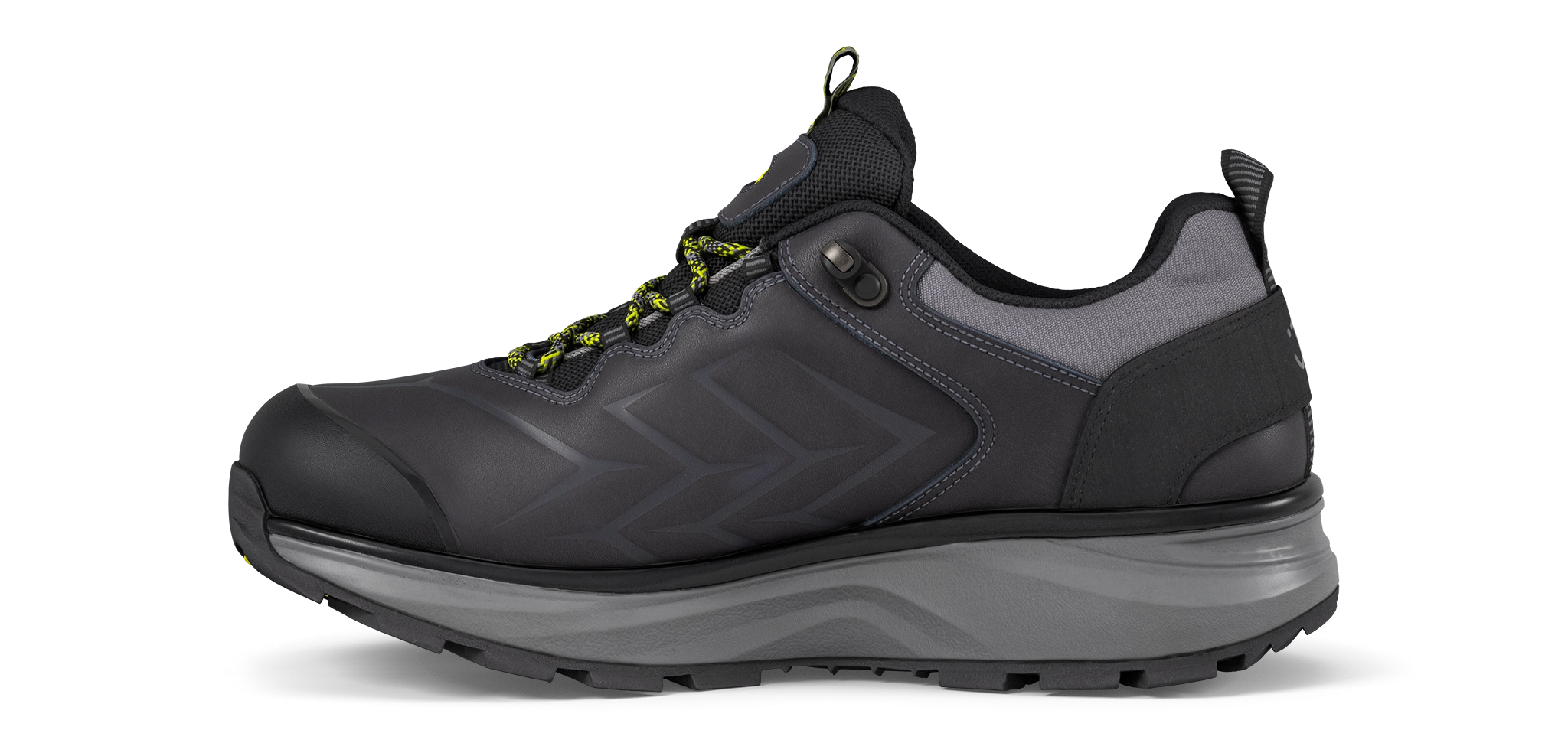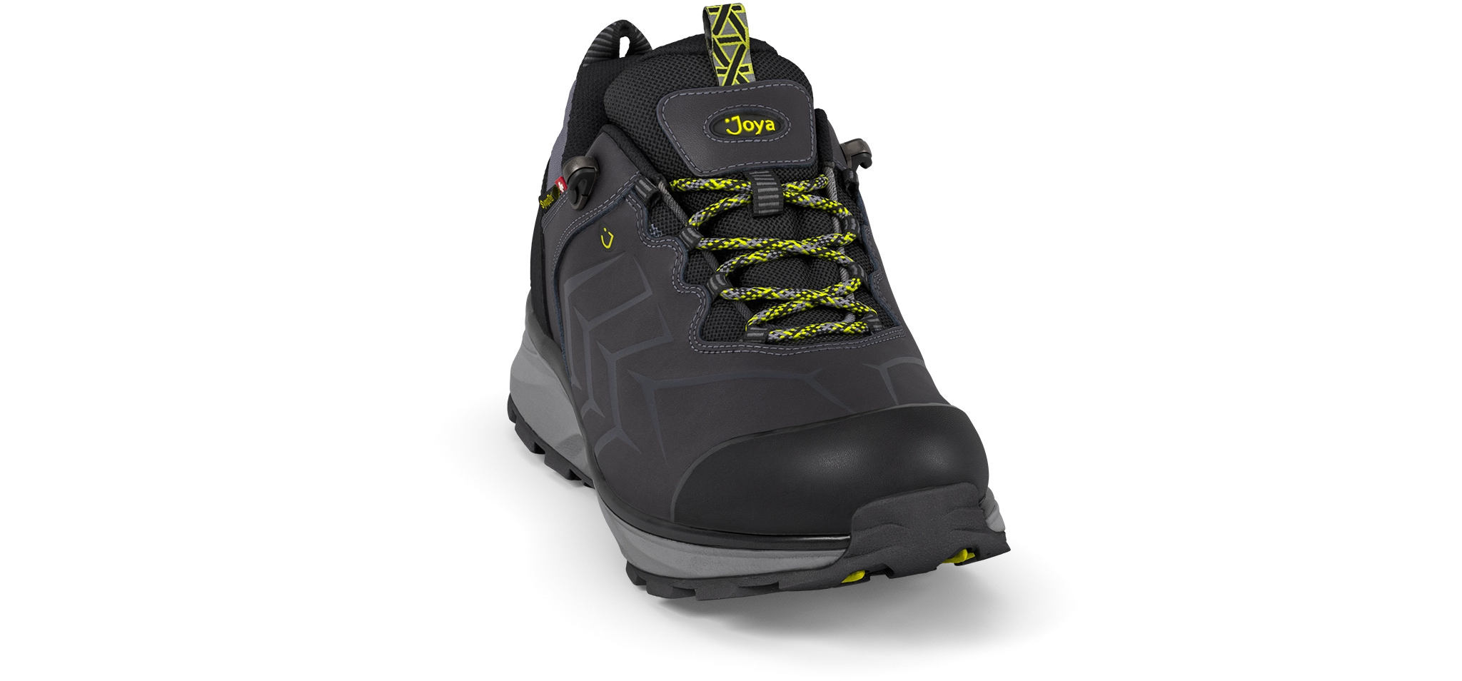 Denali STX dark grey: Robusto zapato de cordones outdoor con gancho metálico superior y puntera de TPU moldeada. Robustos pero extremadamente cómodos. Equipado con membrana Sympatex, transpirable y resistente al agua, para mantener los pies calientes y secos. Incorpora la tecnología de suela Joya Active, que garantiza una combinación ideal de amortiguación, rebote y estabilidad. Para personas dinámicas siempre en movimiento, que necesitan comodidad en acción y rendimiento en cualquier superficie. Suela diseñada específicamente para actividades al aire libre.