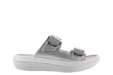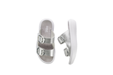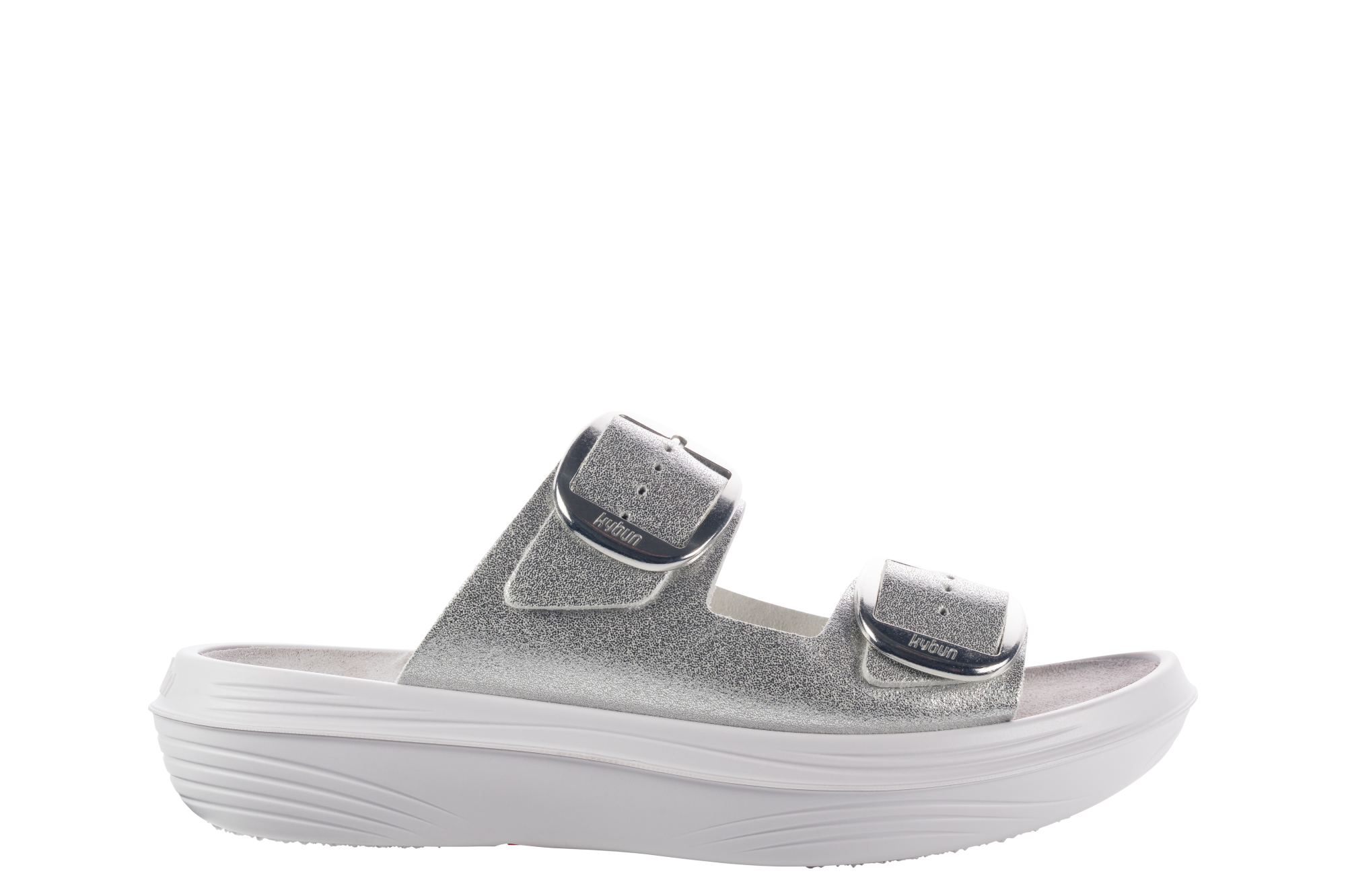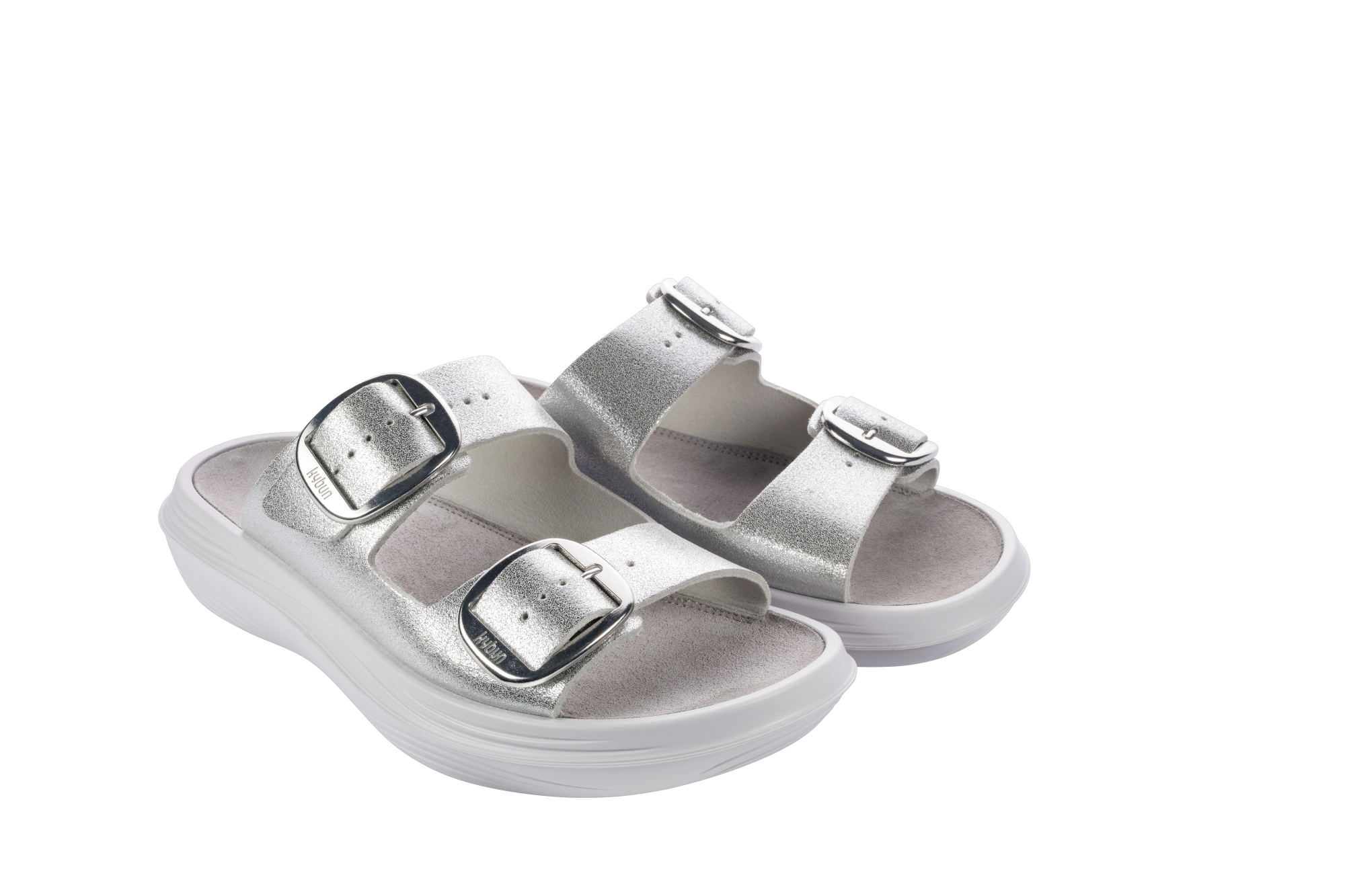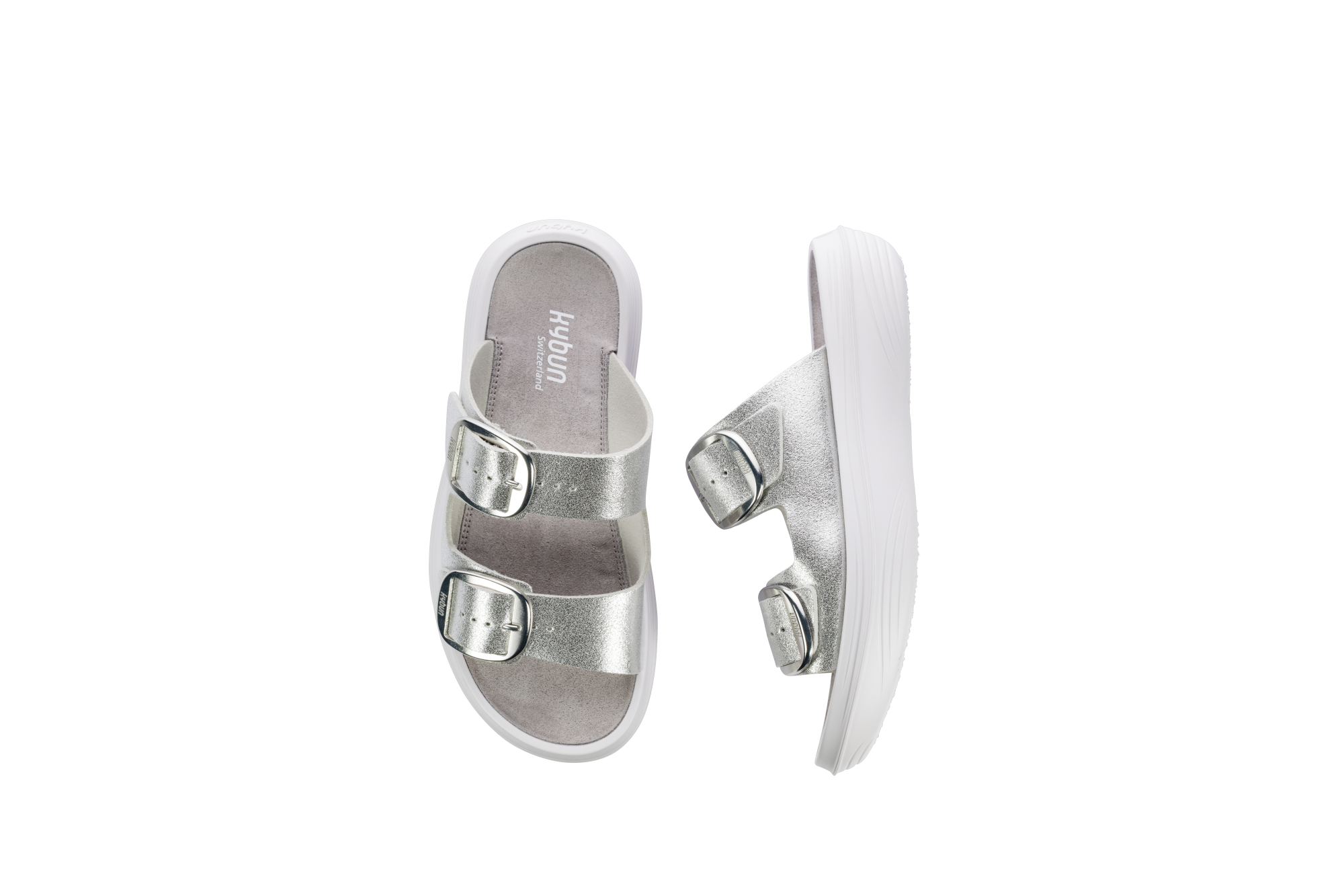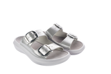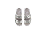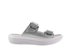 The Glarus silver is an elegant sandal with a slightly shimmering look on the upper material. Two adjustable, large, shiny buckles set clear accents and allow for individual adjustment to different instep heights. Versatile use – at home as well as on the go.