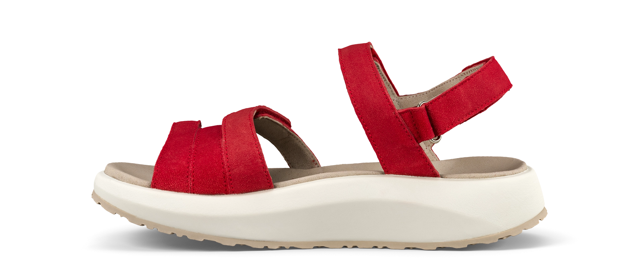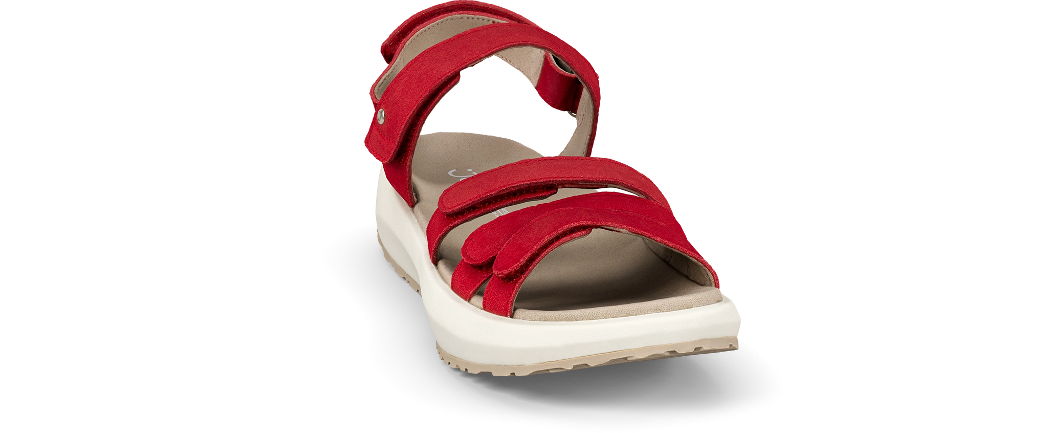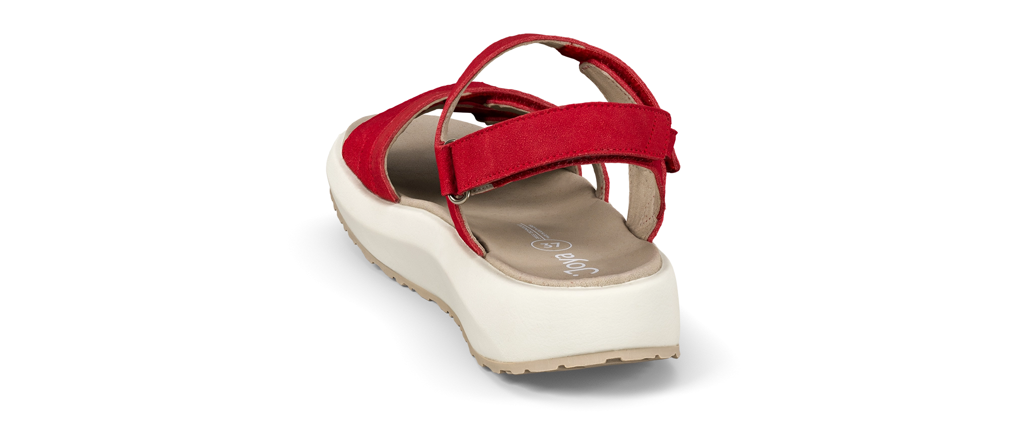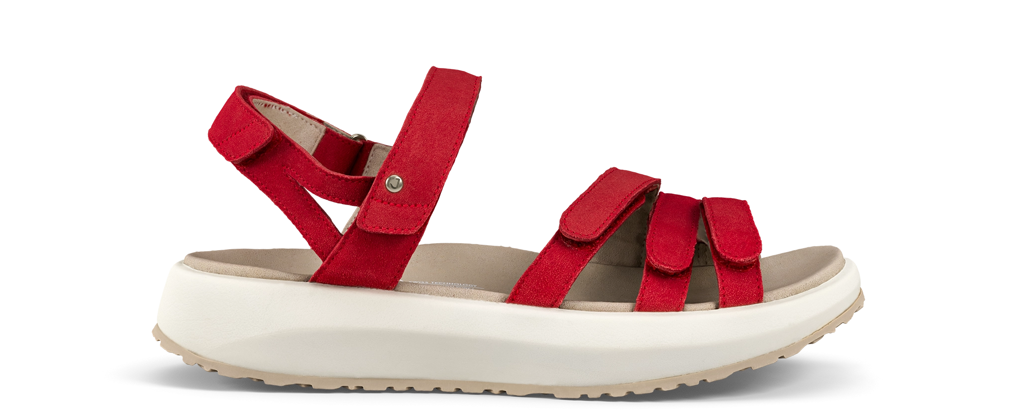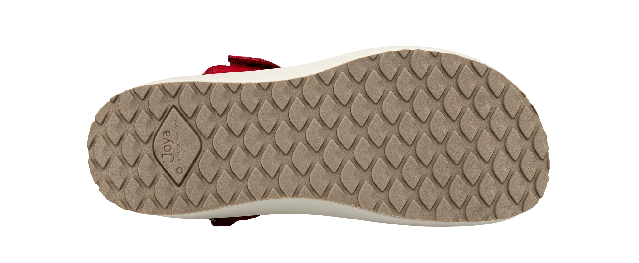 Merida red: Sandale multi-strates en cuir velours luxueux avec doublure en microfibre lisse et veloutée. Les bandes velcro sur le devant, le cou-de-pied et le talon garantissent un ajustement à 360 degrés pour chaque forme de pied. Elégante et insouciante. Dotée de la technologie de semelle Joya Senso qui garantit un excellent effet d'amortissement et une répartition équilibrée de la pression, offrant un confort optimal et soulageant les muscles du dos, les articulations et le stress quotidien des pieds.
