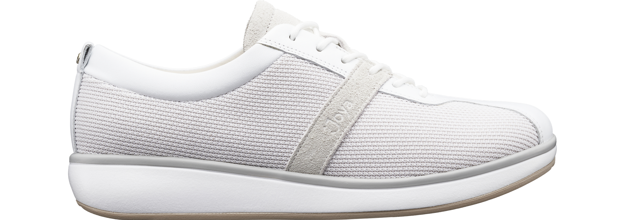 Emma white II: Chaussure décontractée à lacets, élégante, essentielle et polyvalente, avec tige en cuir et textile lisse et doublure en cuir confortable. Elle est dotée de la technologie de la semelle Joya Senso qui assure un excellent effet d'amortissement et une répartition équilibrée de la pression, et offre un confort optimal et un soulagement des muscles du dos, des articulations et du stress quotidien des pieds.