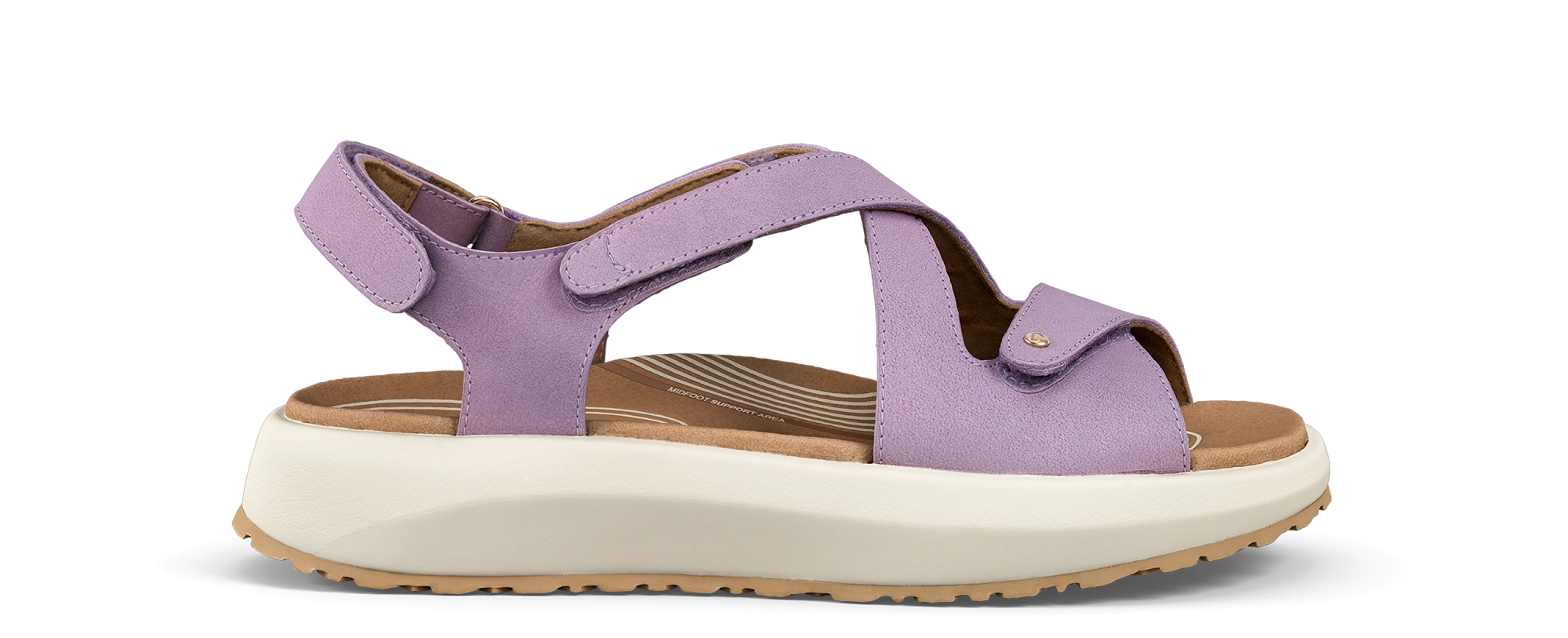 Jenny light purple is a cross-strap sandal made from supple nubuck leather with an elegant look. The adjustable straps allow for an easy, personalised fit that stays comfortable all day. Joya Senso sole technology provides step-by-step cushioning, even pressure distribution and noticeable relief for your back, joints and feet.