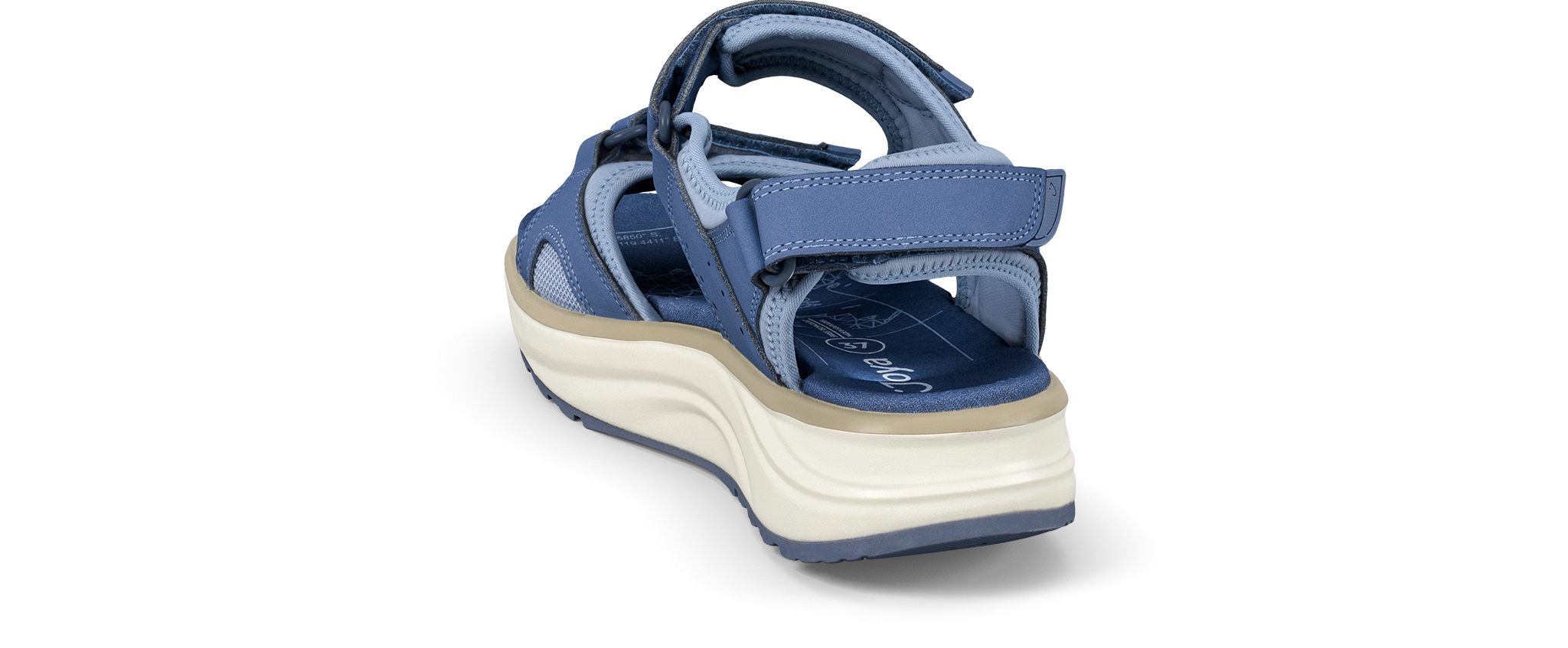 Komodo blue: Sandale d'extérieur en cuir et mesh , avec une doublure en néoprène doucement rembourrée et des bandes velcro réglables sur le talon, le cou-de-pied et l'avant-pied. Dotée d'une assise plantaire ergonomique enveloppée de microfibre douce et veloutée. Dotée de la technologie de semelle Joya Active qui garantit une combinaison idéale d'amortissement, de rebond et de stabilité. Pour les personnes dynamiques, toujours en mouvement, qui ont besoin de confort dans l'action et de performances sur toutes les surfaces.