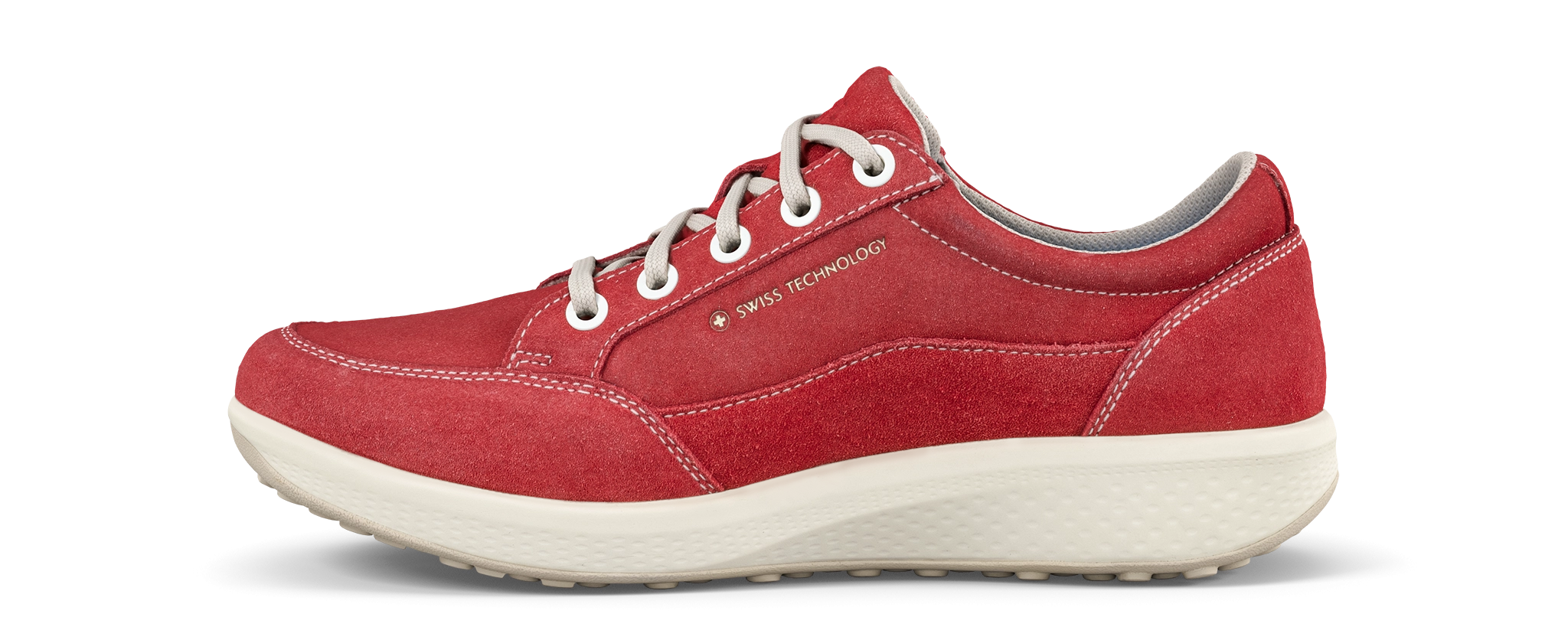 Lucy red: Chaussure à lacets essentielle et polyvalente, avec tige en cuir velours souple et doublure respirante mesh . Le col et la languette sont légèrement rembourrés pour un confort ultime et sans compromis. Le choix idéal pour améliorer votre mobilité quotidienne avec un look et une sensation décontractés. Le tout est complété par l'extraordinaire technologie de semelle Joya Nuvola, qui comprend une semelle intermédiaire souple et élastique et une semelle extérieure en caoutchouc léger.