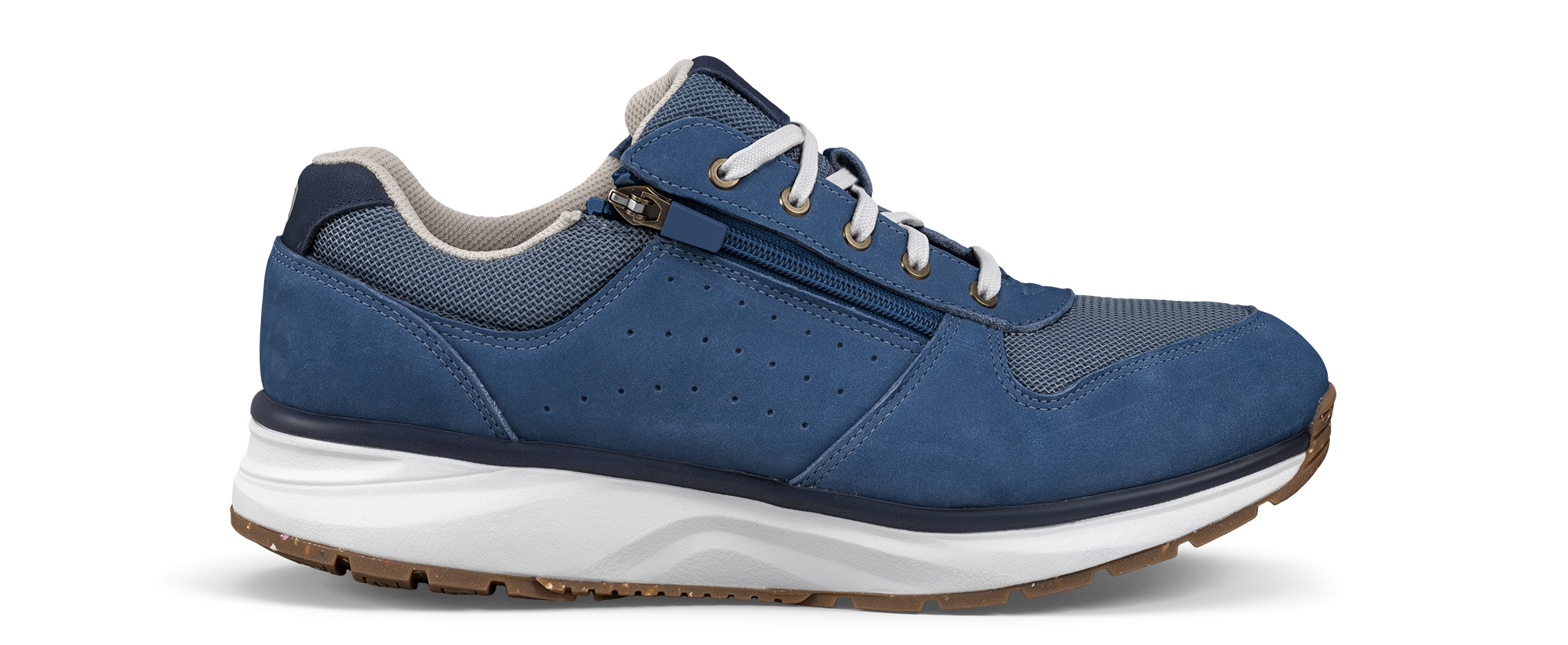 Dynamo Zip blue: sneaker abbagliante in pelle nubuck e lacci mesh dall'atmosfera retrò, con una zip aggiuntiva per facilitare l'ingresso e una fodera traspirante e morbida mesh . Implementata con la tecnologia della suola Joya Active che garantisce una combinazione ideale di ammortizzazione, rimbalzo e stabilità. Per persone alla moda, sempre in movimento, che non rinunciano mai al comfort.