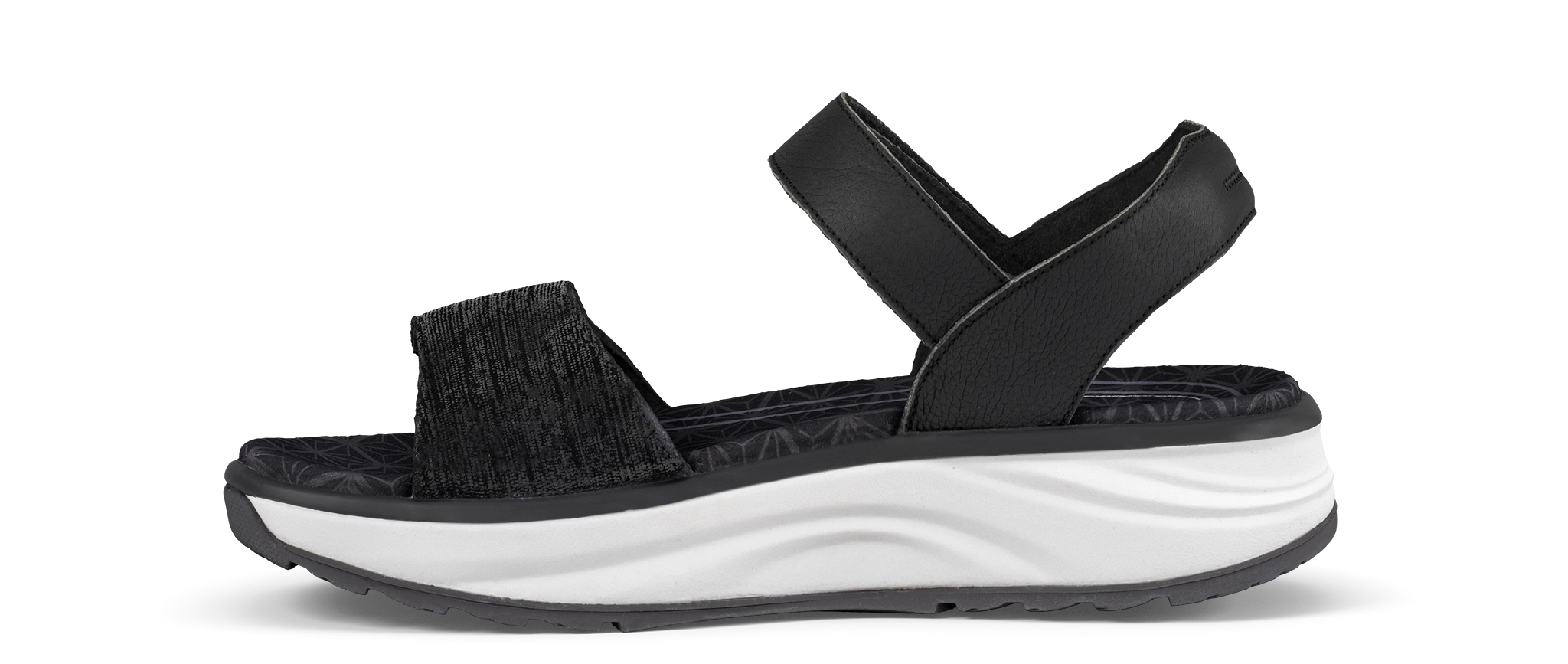 Flores black: Prachtige sandaal van volnerfleder en glinsterend veloursleder met verstelbare klittenbandriempjes op de wreef en de voorvoet. Voorzien van een ergonomisch voetbed omwikkeld met zacht, fluweelzacht microfiber. Uitgevoerd met de Joya Active zooltechnologie die een ideale combinatie van demping, rebound en stabiliteit garandeert. Voor dynamische mensen die altijd in beweging zijn en comfort in actie en prestaties op elke ondergrond nodig hebben.