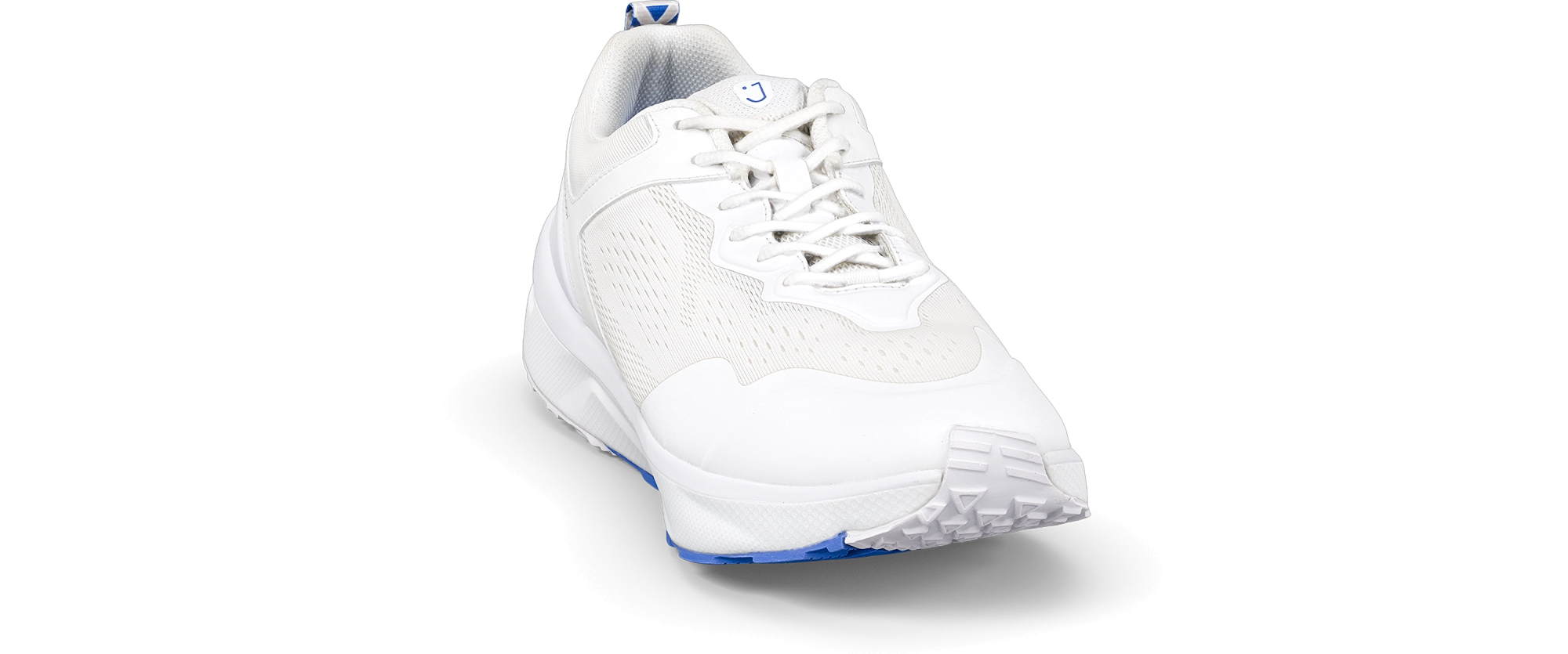 Veloce white: Ademende en lichte mesh veterschoen met soepel gewatteerde tong en kraag voor optimaal comfort. Uitgevoerd met de Joya Active-zooltechnologie die een ideale combinatie van demping, rebound en stabiliteit garandeert. Voor dynamische mensen die altijd in beweging zijn en behoefte hebben aan comfort in actie en prestaties op elke ondergrond.
