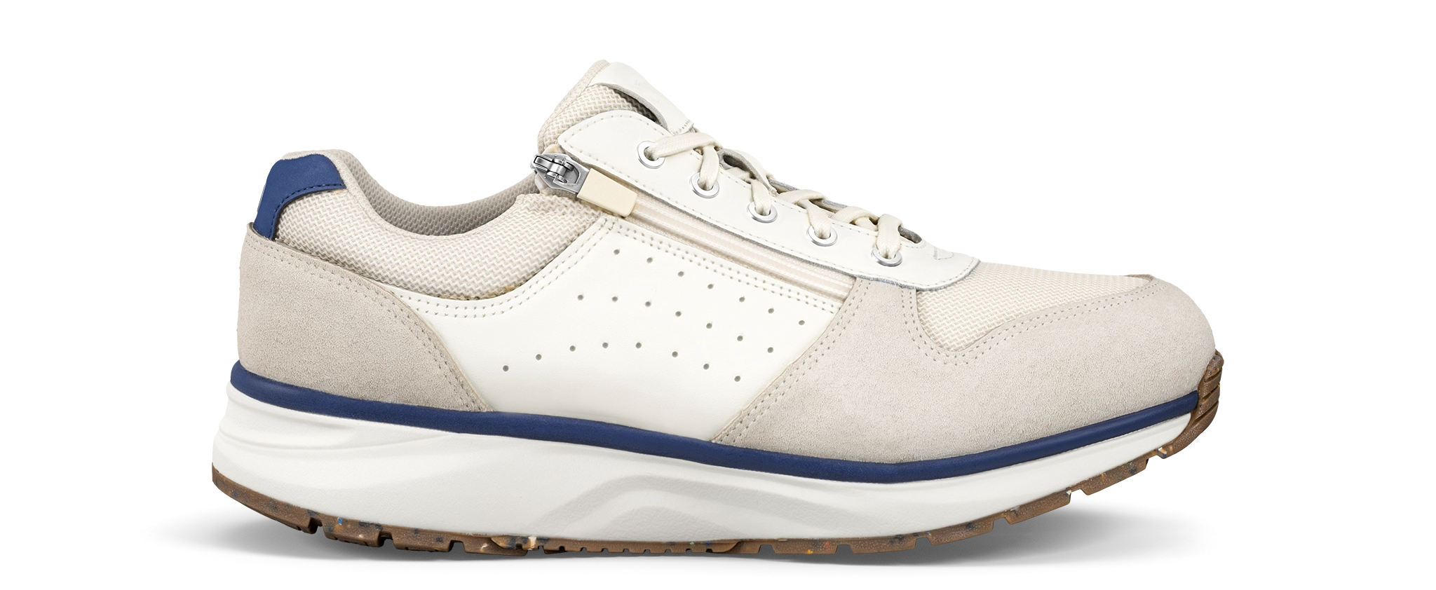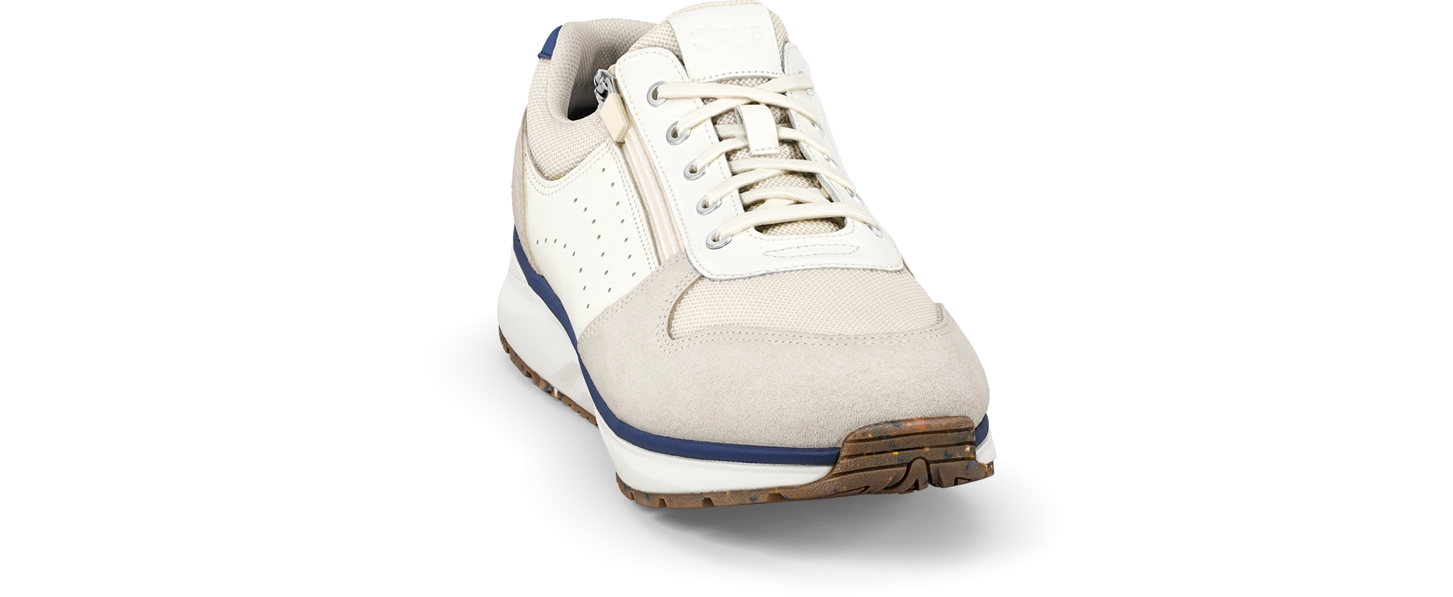Dynamo Zip white: Oogverblindende lace up sneaker met een retro vibe, voorzien van een extra ritssluiting voor een gemakkelijke instap en ademende, zachte mesh voering. Uitgevoerd met de Joya Active zooltechnologie die een ideale combinatie van demping, terugvering en stabiliteit garandeert. Voor modieuze mensen die altijd in beweging zijn en nooit op comfort inleveren.