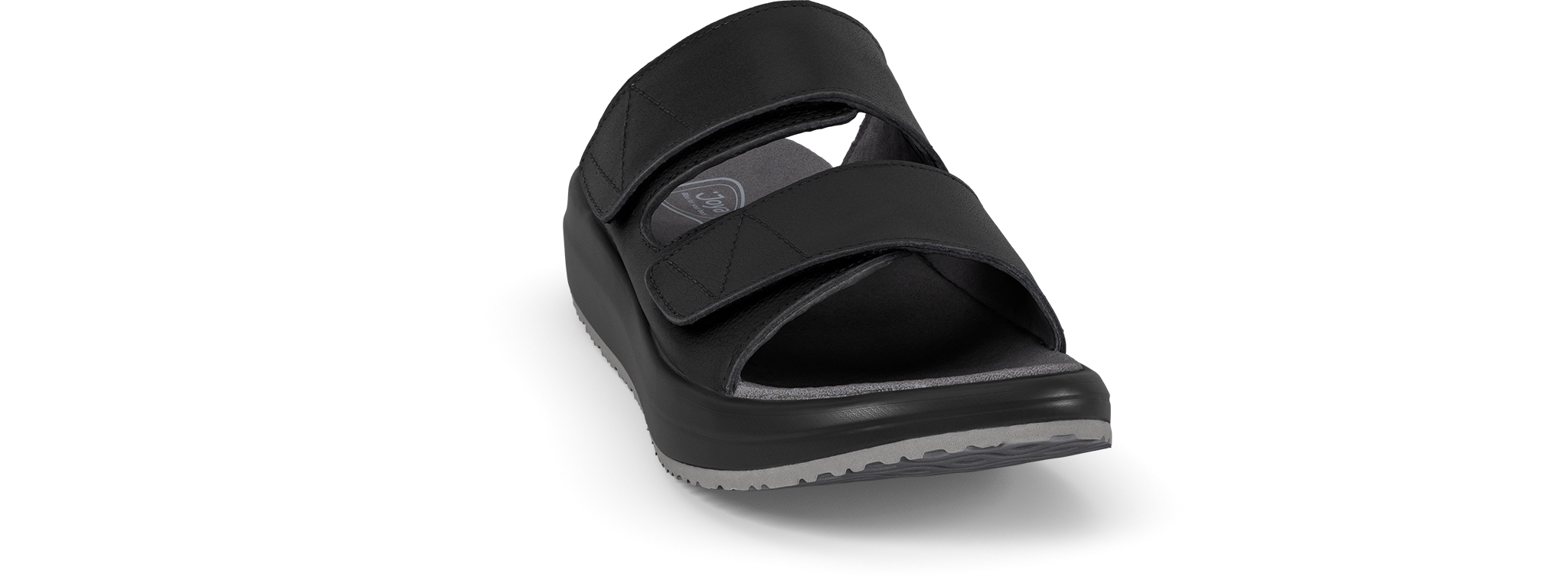 Sturdy full grain leather slide sandal with adjustable velcro straps on the instep and forefoot. Essential and easy going, your best everyday comfort choice for indoor and outdoor use. Featured with the Joya Senso sole technology that ensures excellent cushioning effect and balanced pressure distribution, and delivers optimum comfort and relief for your back muscles, joints and feet daily stress.