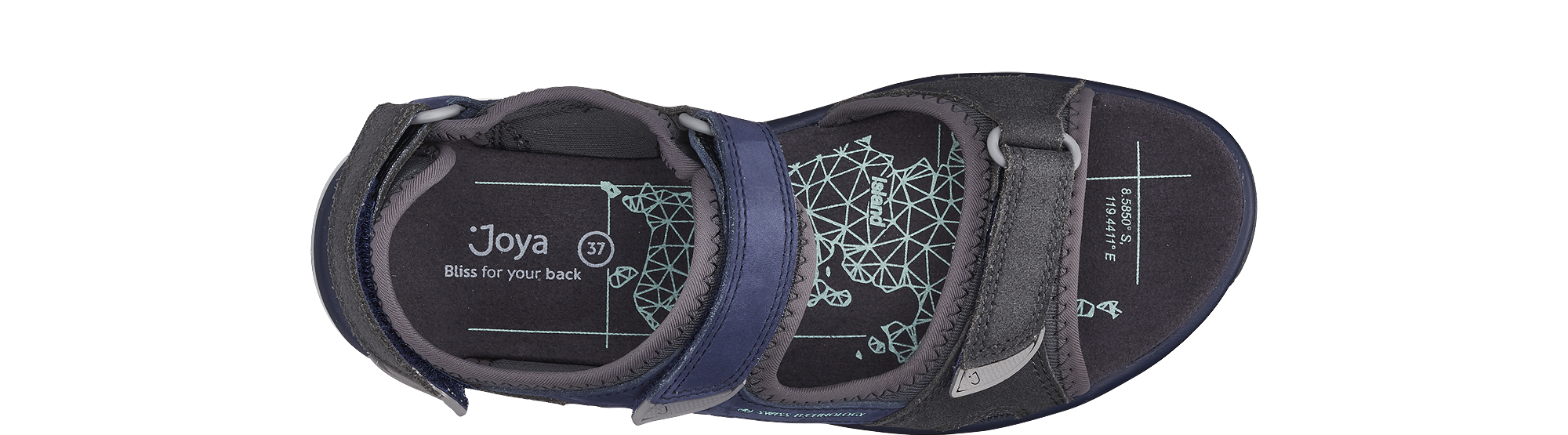 Komodo grey-blue: Sportieve sandaal met bovenwerk van nubuck en gewaxt suède. Heeft een zacht gepolsterde neopreen voering en verstelbare bandjes op de hiel, wreef en voorvoet. Het voetbed heeft een normale breedte en is bekleed met zacht microvezel materiaal. Joya Active zool biedt ideale combinatie van zachtheid en stabiliteit. Geschikt voor mensen met een actieve levensstijl op het werk en tijdens de vrije tijd wanneer fysieke verlichting tijdens het lopen belangrijk is. Geschikt voor mensen met een gevoelige rug en met voeten en gewrichten blootgesteld aan dagelijkse stress.