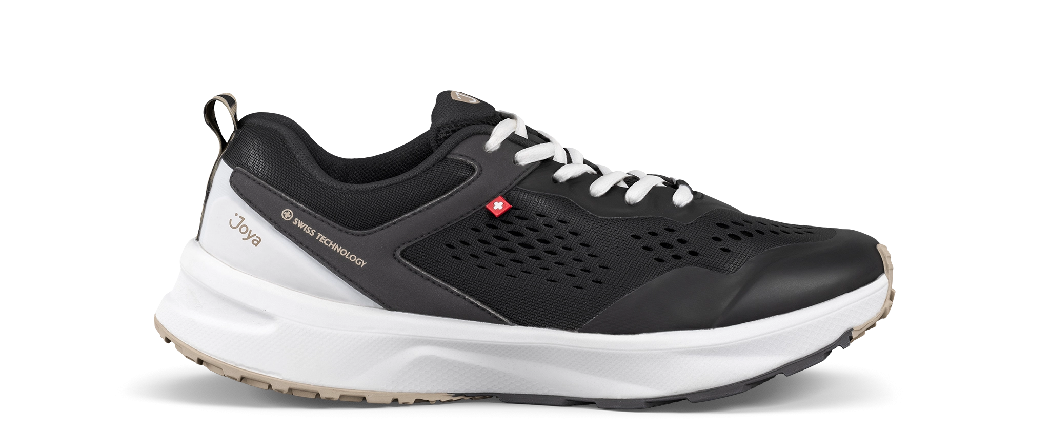 Veloce black-white: Ademende en lichte mesh veterschoen met soepel gewatteerde tong en kraag voor optimaal comfort. Uitgevoerd met de Joya Active-zooltechnologie die een ideale combinatie van demping, rebound en stabiliteit garandeert. Voor dynamische mensen die altijd in beweging zijn en behoefte hebben aan comfort in actie en prestaties op elke ondergrond.