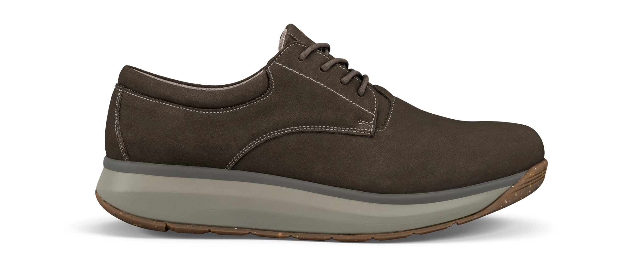 Chicago brown: Rich and robust nubuck leather classic derby shoe with plain toe and smoothly padded mesh lining for superlative forefoot comfort. Featured with the Joya Senso sole technology that ensures excellent cushioning effect and balanced pressure distribution and delivers optimum comfort and relief for your back, joints and feet daily stress