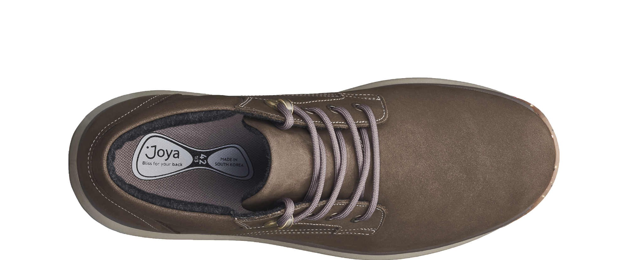 Osaka brown: Rich and robust nubuck leather lace up chukka boot with metal eyelets and top hook. With plain, seamless toe, padded ankle collar and warm lining  for superlative comfort in the cold months. Featured with the Joya Senso sole technology that ensures excellent cushioning effect and balanced pressure distribution and delivers optimum comfort and relief for your back, joints and feet daily