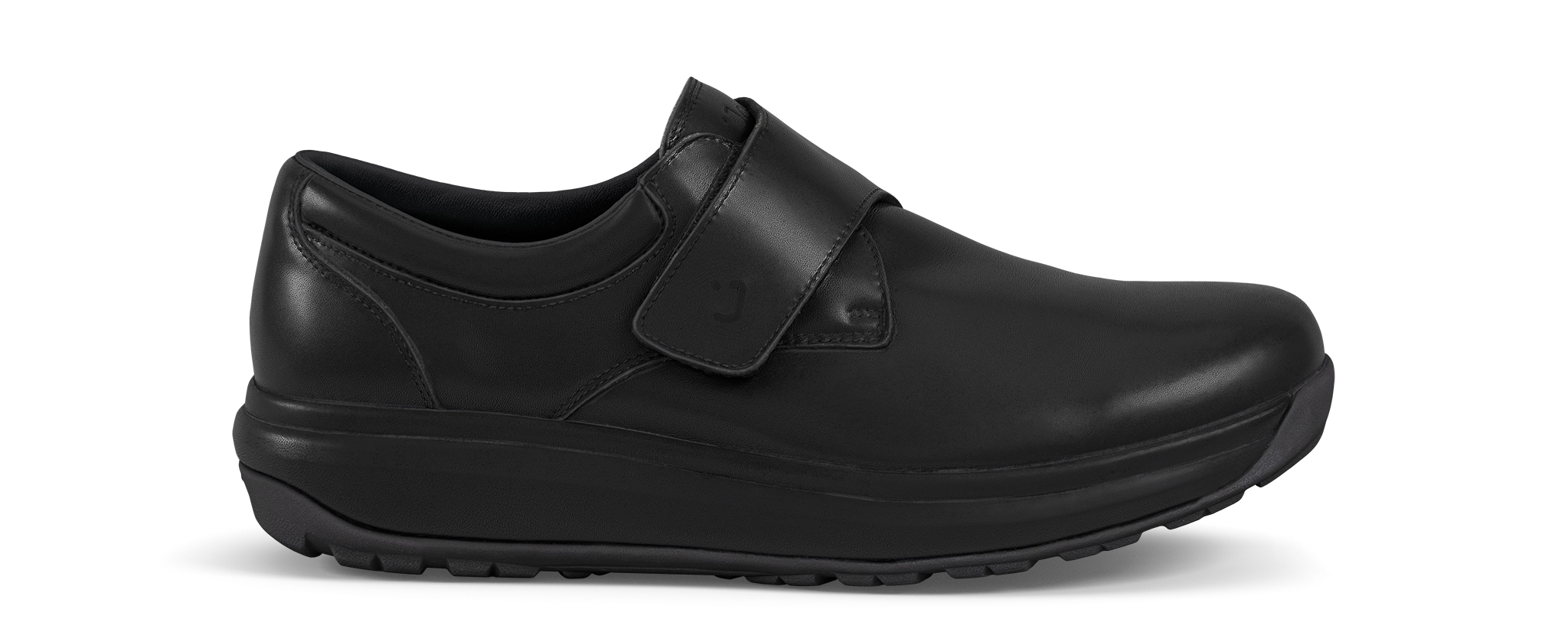 Edward black: Full grain leather derby shoes with instep velcro closure, plain toe and smoothly padded mesh lining for superlative forefoot comfort. Featured with the Joya Senso sole technology that ensures excellent cushioning effect and balanced pressure distribution and delivers optimum comfort and relief for your back, joints and feet daily stress.