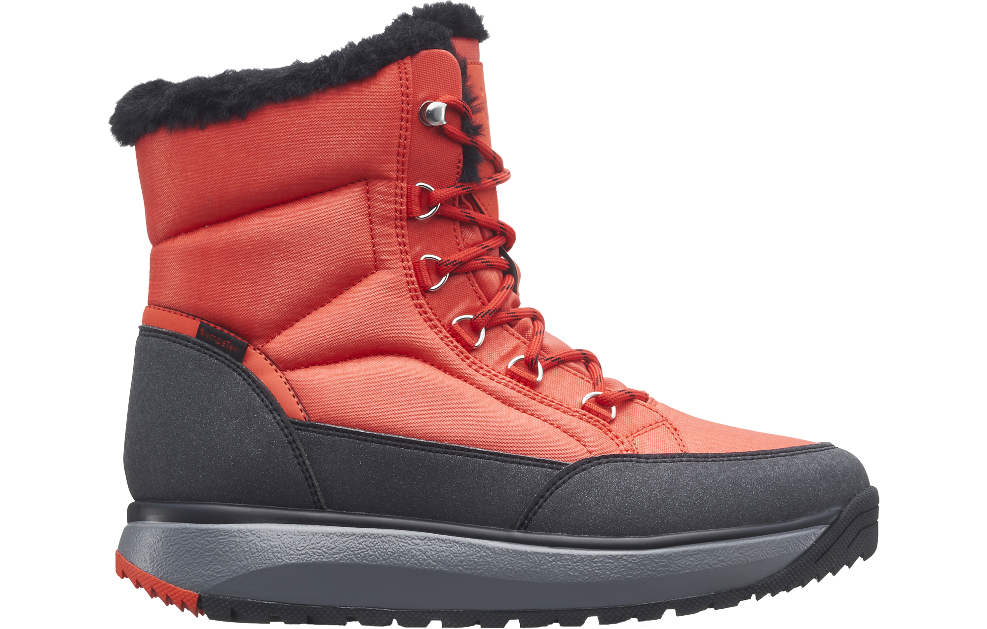 Ripstop nylon boots with speed lacing system and synthetic fur lining. Fitted with breathable Sympatex membrane water resistant construction to keep your feet warm and dry and treaded rubber outsole for extra traction. Featured with the Joya Senso sole technology that ensures excellent cushioning effect and balanced pressure distribution and delivers optimum comfort and relief for your back muscles, joints and feet daily stress.