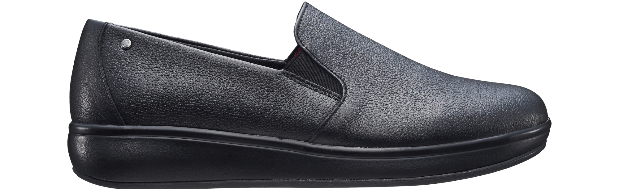 Clara SR black: Beautifully simple supple full grain leather slip on shoes with leather lining and slip resistant sole. Great for every occasion. Enhanced with the Joya Senso sole technology with unique cushioning effect, that provides optimum relief for back muscles and joints.