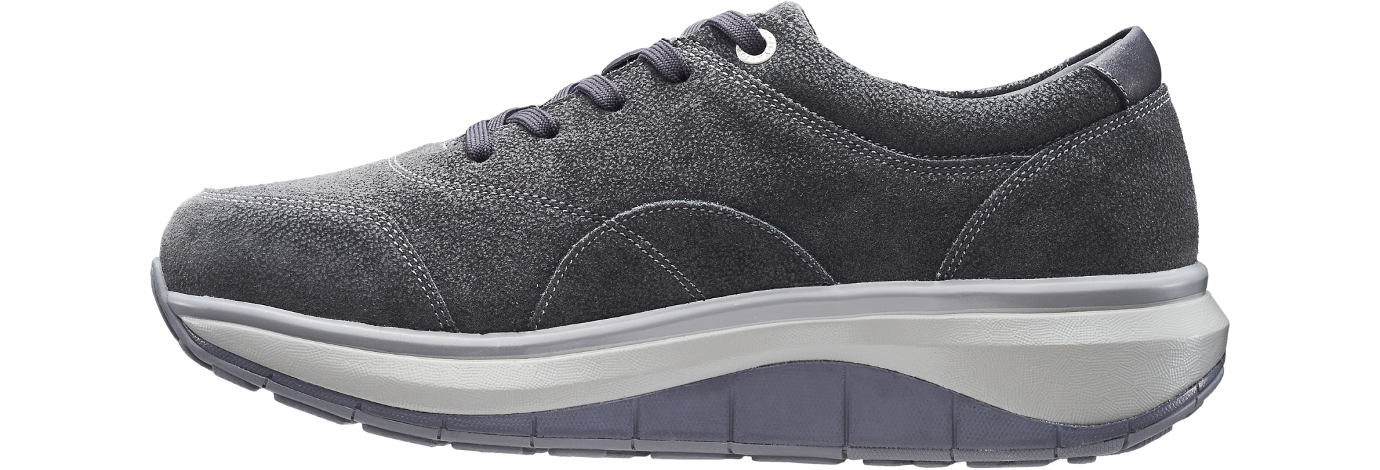 Venice dark grey: Exquisite sparkling suede lace up shoe with breathable mesh tongue. Thanks to the Joya extra width system, that allows the shoe to be specifically adapted to each individual foot and to be combined with orthotic insoles, it always suits your ideal fit. Equipped with the Joya Wave sole technology that provide extraordinary comfort while supporting the arch of the foot and encouraging the natural movement process.