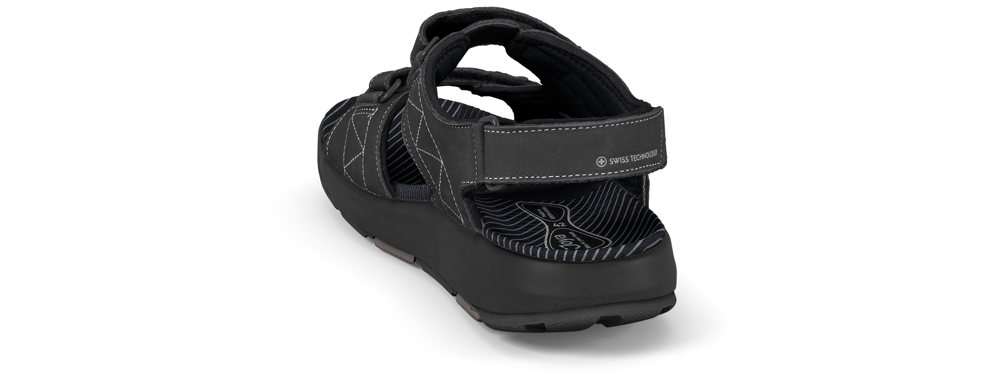 Alexander black: Casual outdoor sandal with softly padded neoprene lining and adjustable hook-and-loop straps at the heel, instep, and forefoot. The ergonomic footbed is wrapped in soft microfiber for added comfort. Joya Active sole technology provides the ideal combination of cushioning, rebound, and stability – perfect for those who are always on the move and want to feel comfortable on any surface.