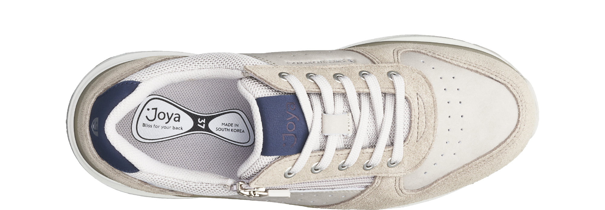 Dynamo Zip beige: Dazzling lace up sneaker with a retro vibe, featuring an additional zip for easy entry and breathable, soft mesh lining. Implemented with the Joya Active sole technology that guarantees an ideal combination of cushioning, rebound and stability. For fashionable people always on the move, who never compromise on comfort.