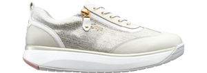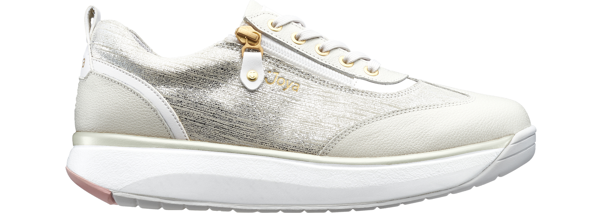 Laura beige-white: Casual lace up shoes with additional zipper for easy entry. Upper made in combination of soft full grain leather with sparkling suede leather and textile lining. New Senso light sole with a strong cushioning effect will provide optimum relief for your back muscles and joints. Suitable for people with a sensitive back and with feet and joints exposed to daily stress.