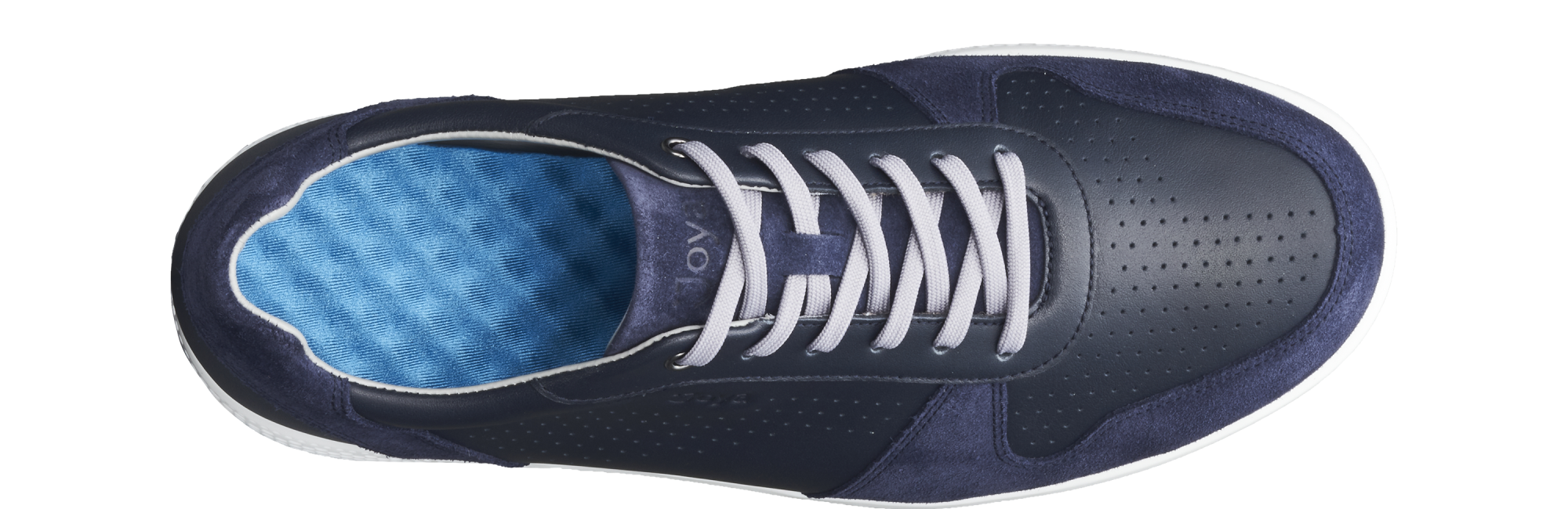 Sven dark blue: Contemporary sneaker for relaxed mobility, with perforated full grain and velour leather upper with smart color details. The feel-good attitude is boosted by the wavy Ortholite Nuvola Foam Insole that provides an incomparably delightful wearing sensation. Topped off with the extraordinary Joya Nuvola sole technology, which comprises soft and elastic midsole plus lightweight EVA outsole, with rubber pods for additional grip.