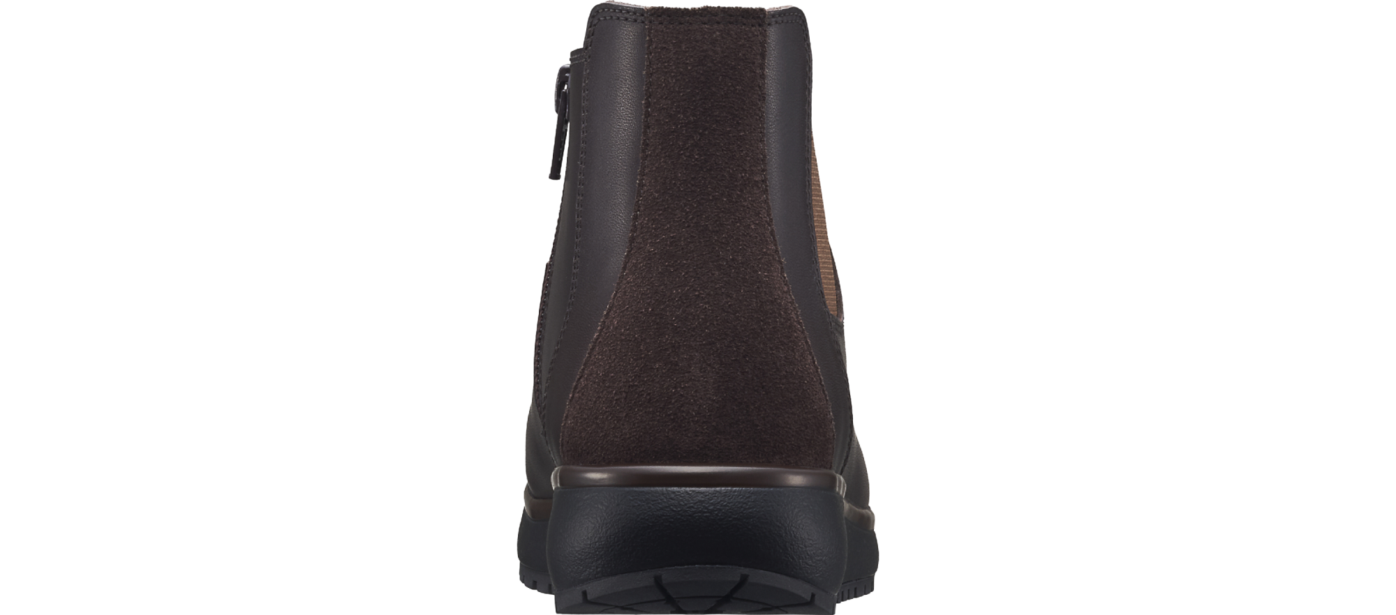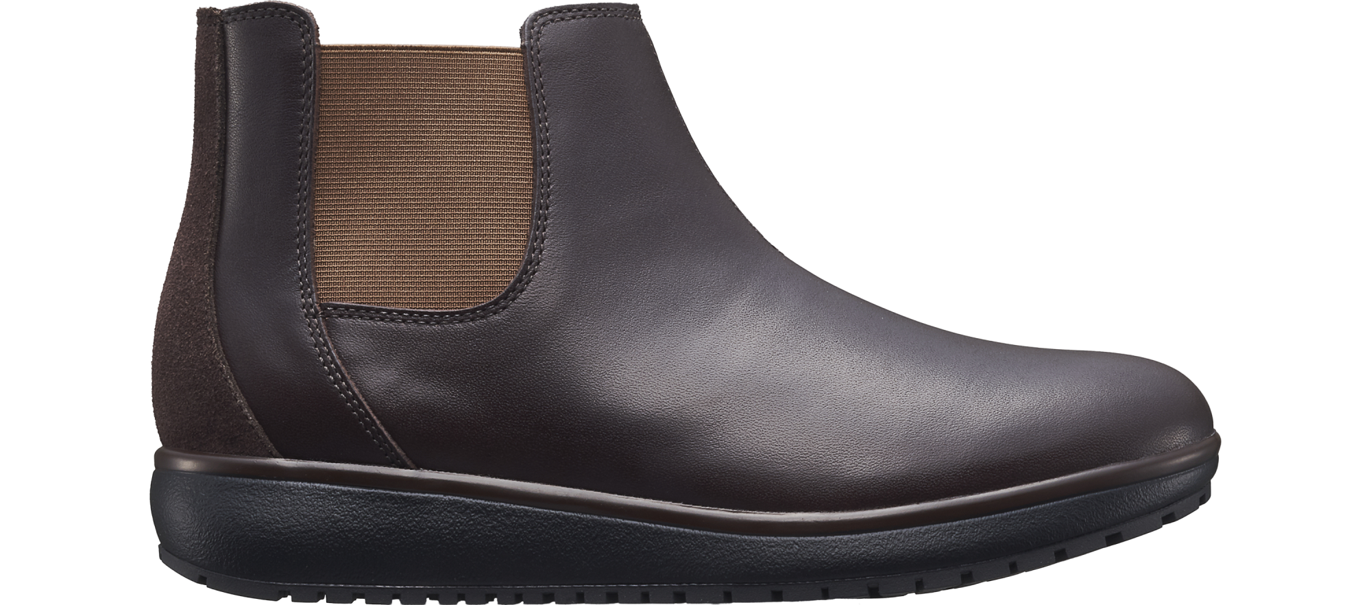 London II dark brown: Sophisticated chelsea boot with zip on medial side for easy entry. Soft full grain leather upper with suede tasteful detail. Leather and textile lining. Featured with the Joya Senso sole technology that ensures excellent cushioning effect and balanced pressure distribution, and delivers optimum comfort and relief for your back muscles, joints and feet daily stress.