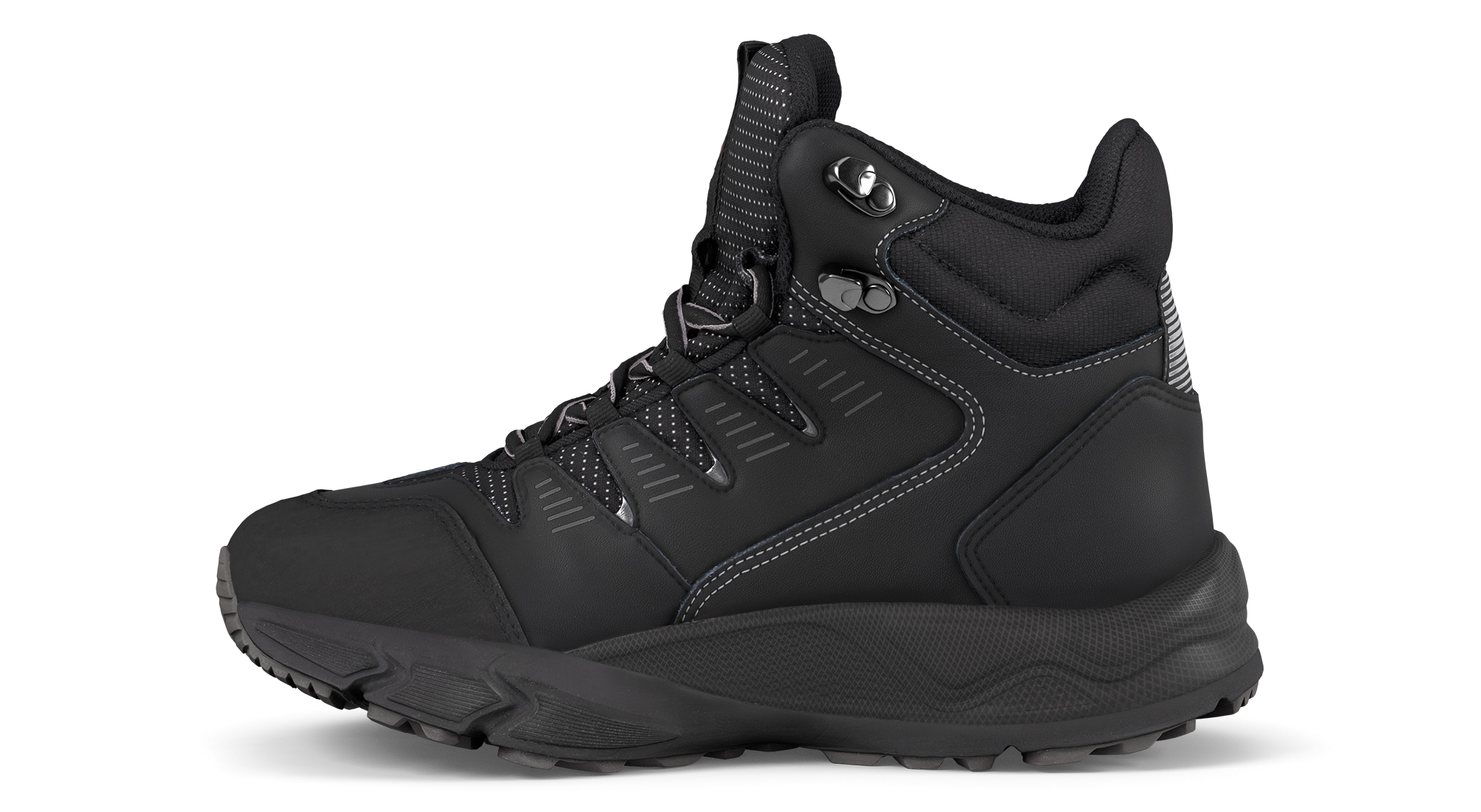 Sierra STX black: Robust yet lightweight lace up outdoor boot. Fitted with breathable Sympatex membrane water resistant construction to keep your feet warm and dry. Implemented with the Joya Active sole technology that guarantees an ideal combination of cushioning, rebound and stability. For dynamic people always on the move who need comfort in action and performance on every surface. Outsole designed specifically for outoor activities.